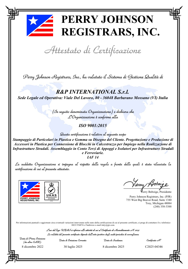 R&PINTERNATIONAL ha sviluppato la propria organizzazione in accordo a quanto previsto dalla normativa UNI-EN-ISO9001:2015